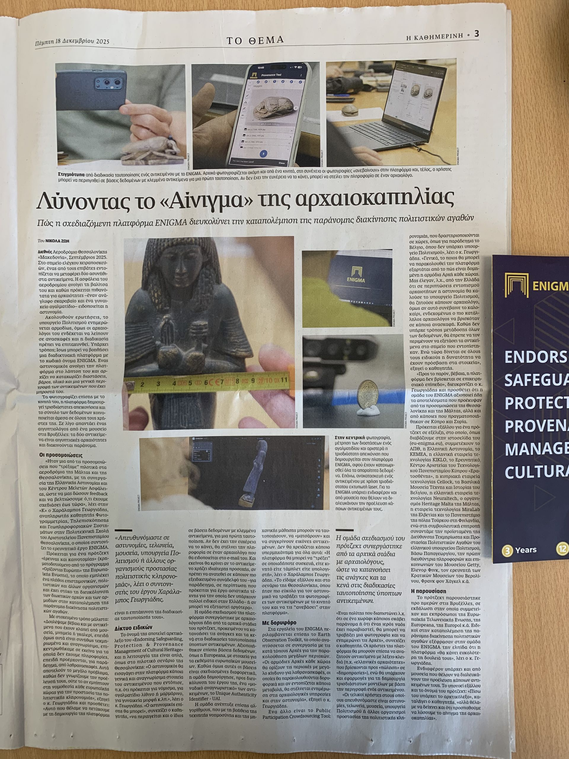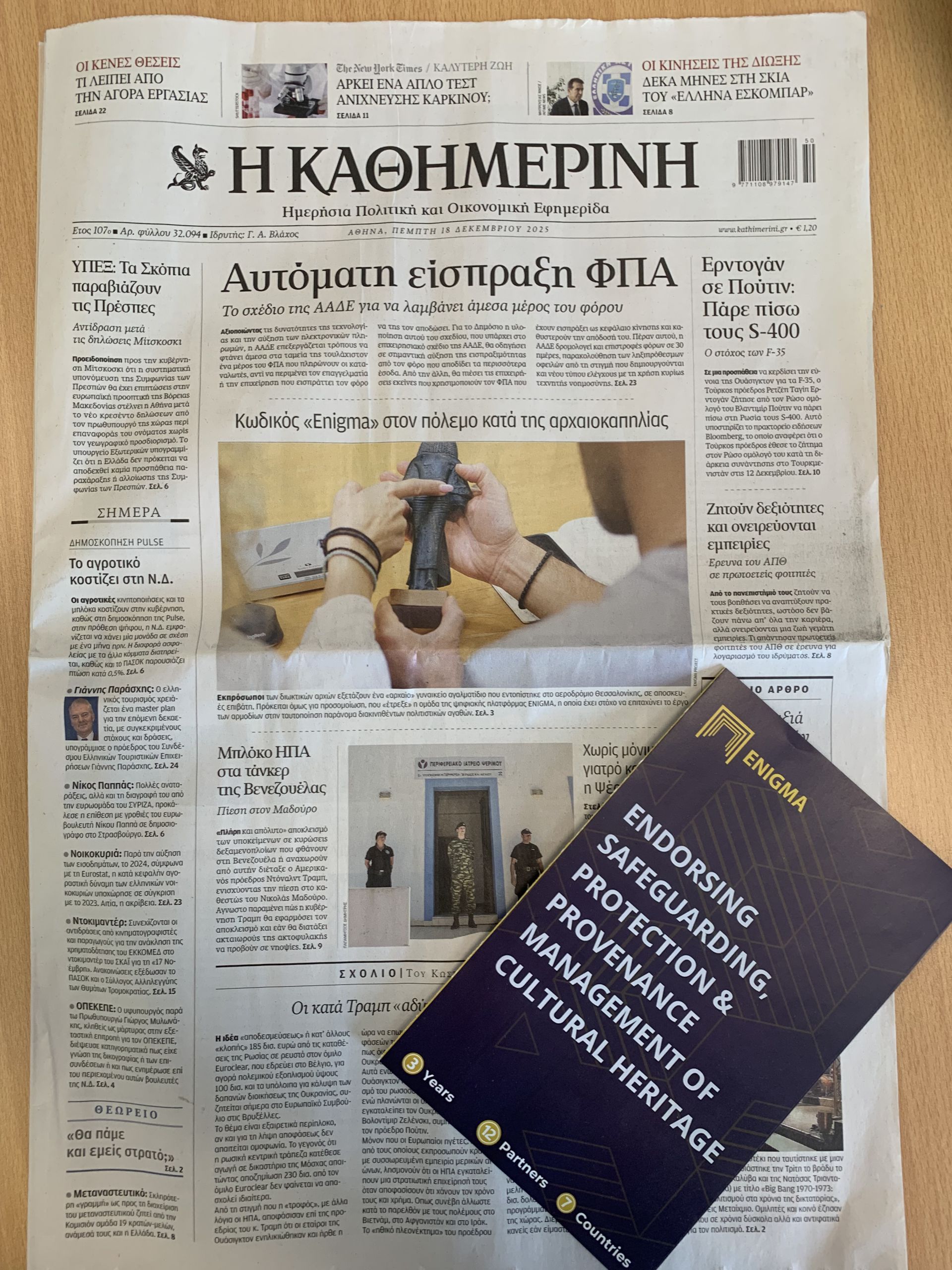 The ENIGMA Project has been featured on the front page of Kathimerini, one of Greece’s most trusted and authoritative newspapers.